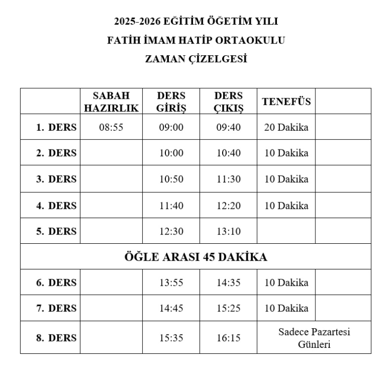 Ders Giriş Çıkış Saatlerimiz